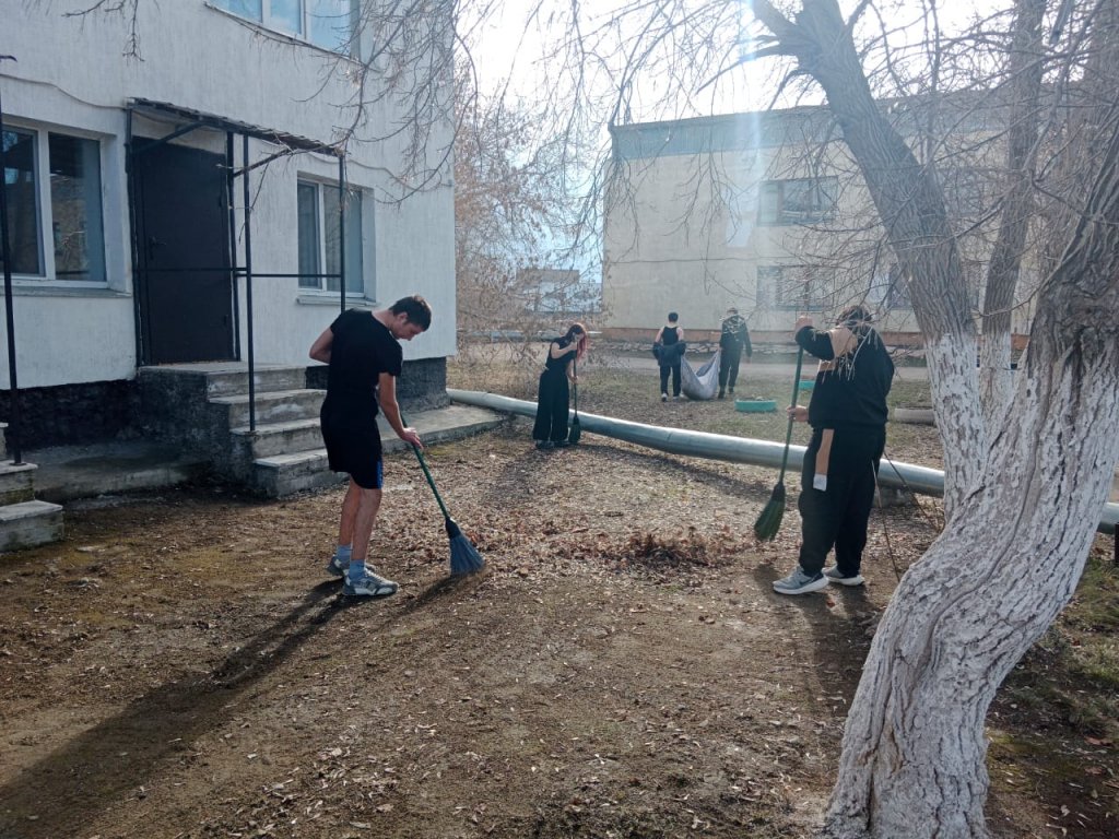 09.04.2026 года в рамках реализации Программы воспитания «Адал азамат» студенты общежития ГККП «Агротехнический колледж, п.Аршалы» занимаются благоустройством территории общежития.